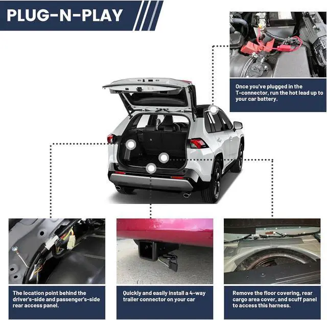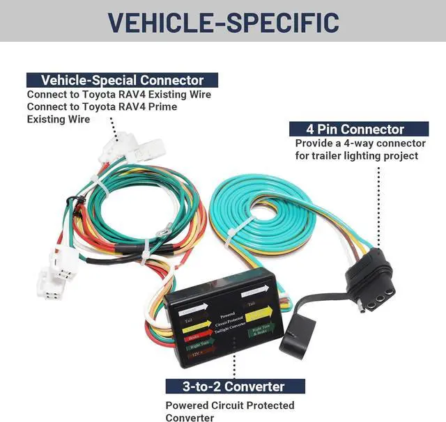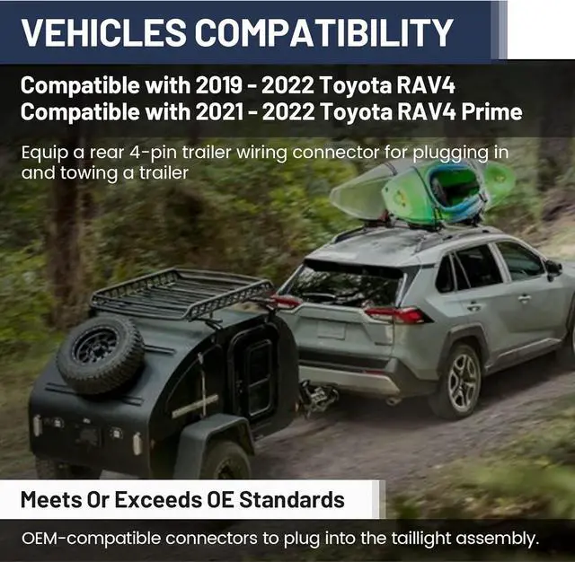Durable Construction: - This receiver hitch wire harness for Toyota RAV4 construct with heavy duty bonded wire and premium tin-plated copper terminals perform in great corrosion-resistant and conductivity