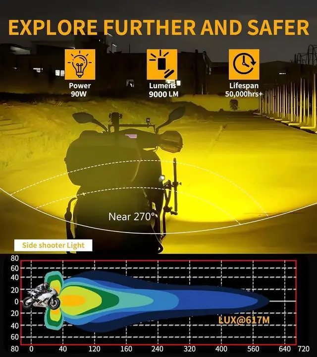 Five light modes: The auxiliary light comes with wiring harness. The light mode can be freely switched through switch: high beam, low beam, hight beam & low beam light on at time. Added daytime running light mode and breathing light mode. The daytime running light mode can help you improve your visibility when driving during at day. Can illuminate the journey without harming other rider. The breathing light mode can help you improve the safety of driving at night and realize the transition from light to dark and then to bright again. The lighting changes provide you with personalized choices of lighting modes, which enhances the coolness of riding and makes your motorcycle the focus at night
