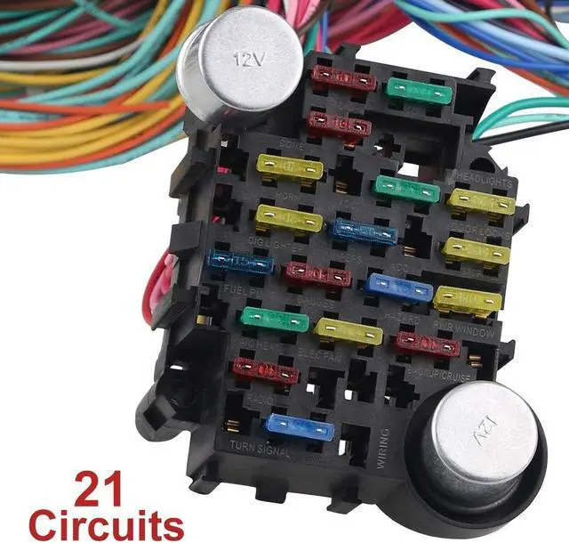 This universal complete automotive wiring harness kit system has an easy to install design and has the ability to be expanded. It can be installed anywhere under the dashboard or seat. It is the choice for your car modification