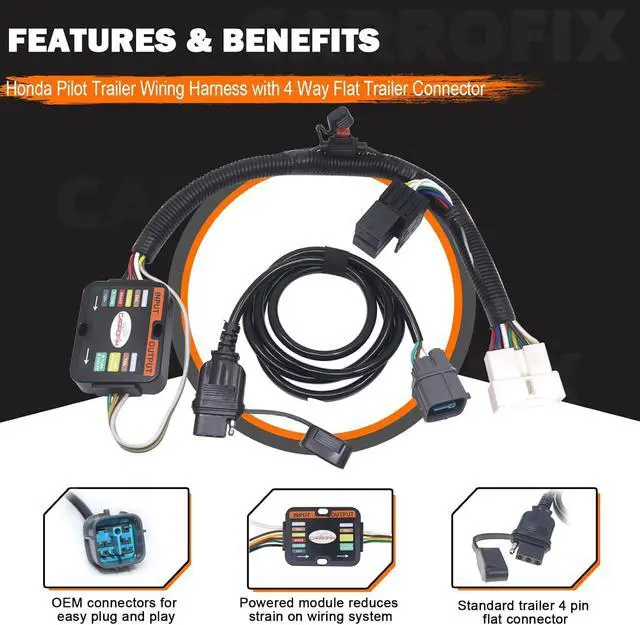 GUARANTEED FIT - What you see and what you get, comes with a Pilot trailer wiring harness with 4 way trailer connector and necessary accessories and parts