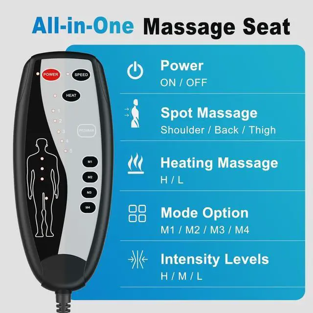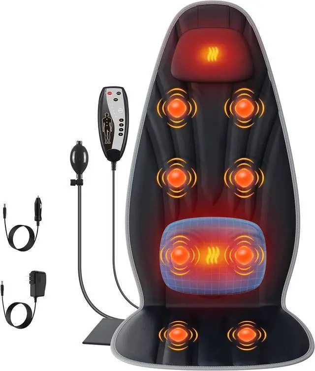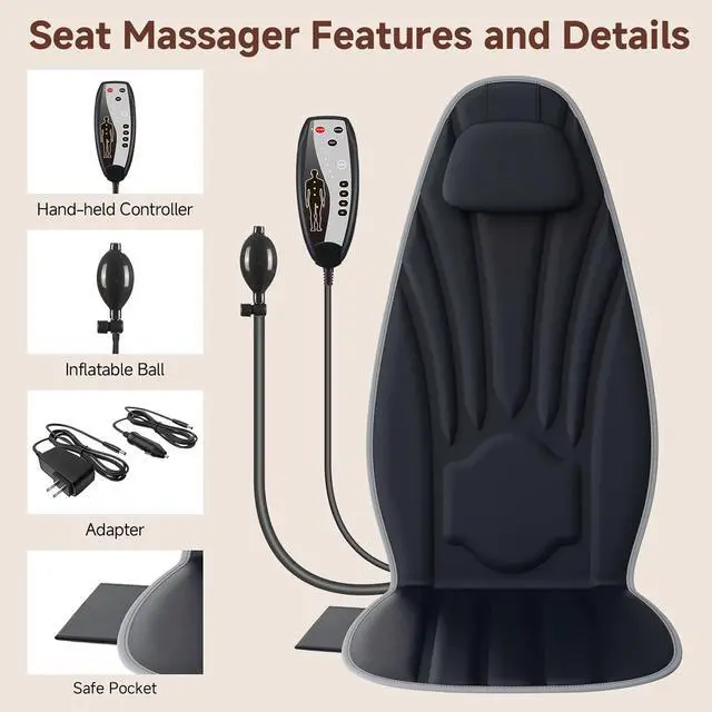 Massage Seat Cushion with Customized Lumbar Support On DemandThe back massager is quipped with lumbar support and heating elements on the back, you can adjust the appropriate size and temperature according to your personal needs. The chair massager can be used to provide support for your waist. There is also a heating pad on the pillow of the seat massage cushion