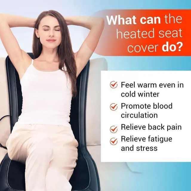 Quality Material]: The heated cushion is made of PU material at the edge position, which makes the cushion look more characteristic and advanced, and the cushion part is made of frosted velvet, which locks in heat and keeps you warmer, giving your body a comfortable experience, and at the same time is not prone to fading