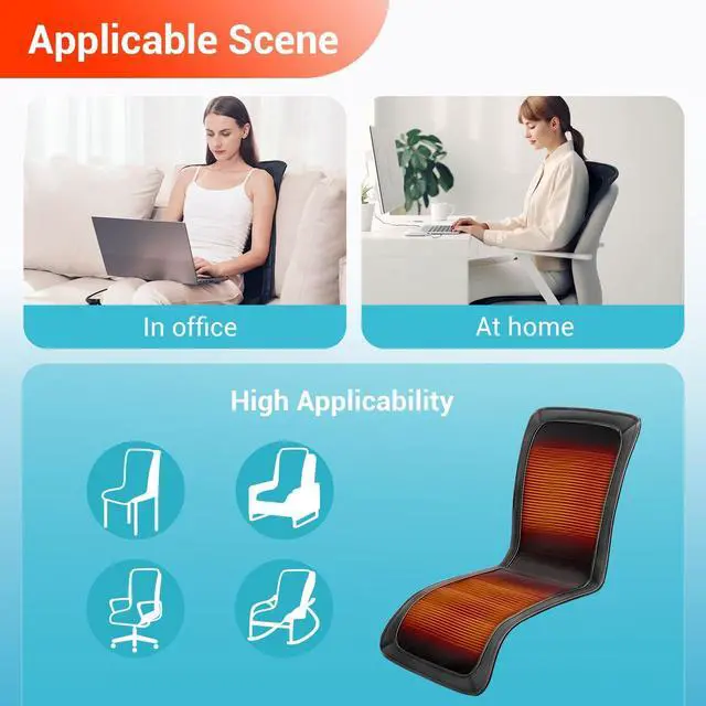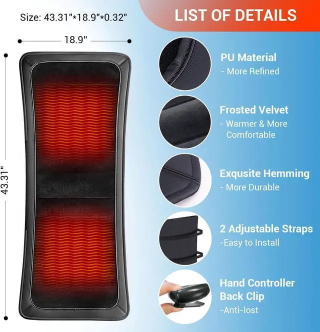 [Non-slip Heated Seat Cover]: The back of the cushion is made of non-slip fabric+ 2 adjustable straps, so that the cushion can be quickly fixed on different types of chairs, and we have added a back clip design on the back of the hand controller, you can clip the hand controller to the cushion when you are using it, so you don't have to worry about the hand controller being nowhere to be placed!