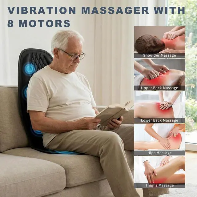 Lumbar Support Design: The unique adjustable 3D lumbar support cushion is ergonomically designed to provide good support for the lower back for all. Sit on this massage chair pad and feel the relaxation of the waist. Lumbar support with vibration and heating function, can better relieve back pain