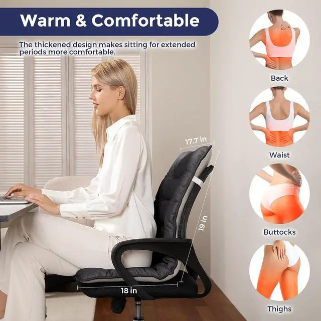 Versatile Use: This seat warmer fits a wide range of chairs, including office chairs, sofas, and wheelchairs. Suitable for women, men, office workers, the elderly, or anyone who is sensitive to cold.