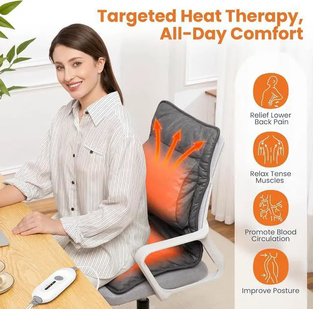 Heating Pad Fits Most Chairs: Securely attaches to office chairs, couches, and recliners with 2 adjustable straps and anti-slip underside, our heated chair pad is ideal for workdays, road trips. A thoughtful gift for parents, seniors, or colleagues, perfect for Christmas, Thanksgiving, birthdays, or "just because"