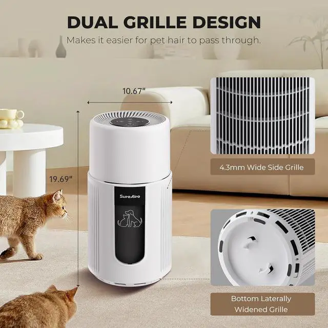 Mess Cleaning: Simply toss the cotton pre-filter when its dirty and replace with a fresh one--no washing needed. This pet hair air purifier saves time and effort, making it especially convenient for busy pet parents in multi-pet households.