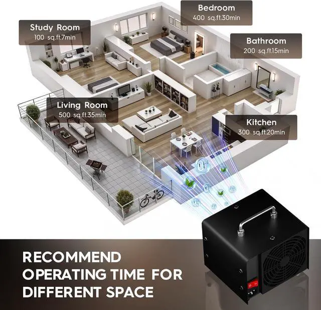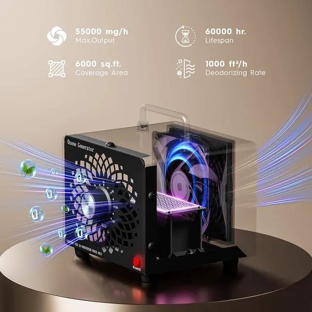 RAPID ELIMINATIONWith an output of up to 55, 000 mg/hour, ozone odor eliminator allows you to experience fast results, enabling you to quickly restore freshness to large spaces, including those up to 6, 000 square feet in size