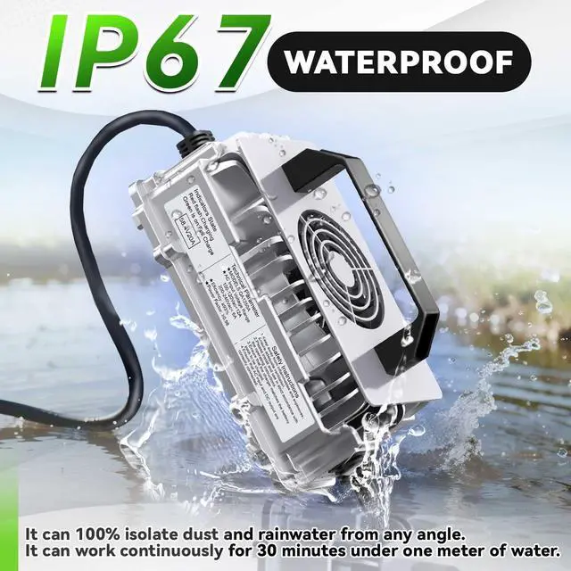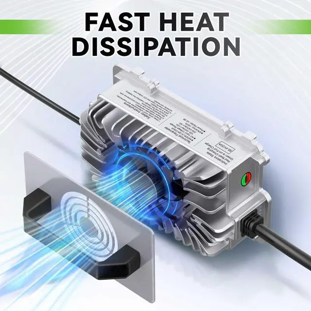 Vortex Heat Dissipation DesignThe 48V Lithium battery charger comes with a cooling fan and is designed with a vortex around it, which greatly increases the cooling efficiency.