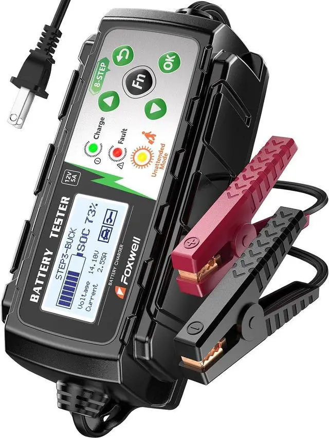 Built-In Safety & Outdoor Durability Designed for worry-free unattended charging, this automotive battery charger and tester helps protect both you and your battery from common risks like sparks, overcharging, and overheating. With 6 built-in protections, an IP65 waterproof rating, and a flame-retardant housing, its safe to use both indoors and outdoors, even in challenging conditions.