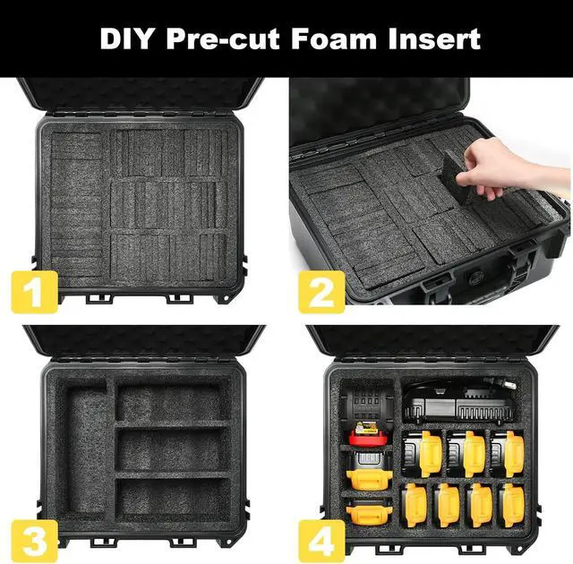 Versatile Compatibility: The Waterproof hard case Compatible with a wide range of tool battery brands and model, universal compatible with Dewalt and More 8v/12v/18v/20v Battery & Chargers. Portable and compact, a great solution for storage, carry, or protecting tool battery.