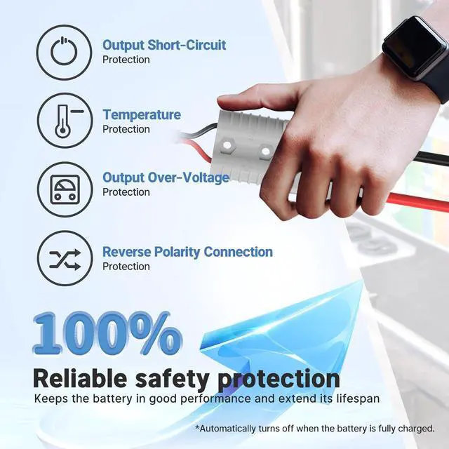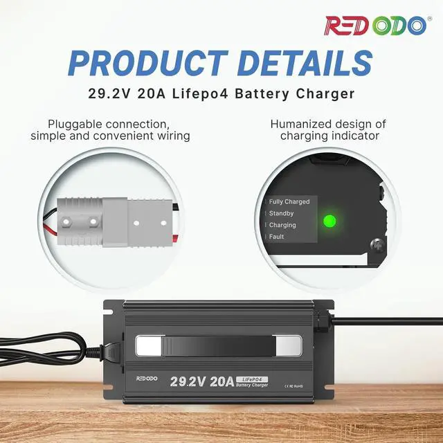 Quality Guarantee & High Reliability The LiFePO4 battery charger is composed of high-quality military and industrial grade components. The advanced circuit design and strict production process according to ISO 9001:2008 quality management system make the charger low failure rate, high reliability and long service life.