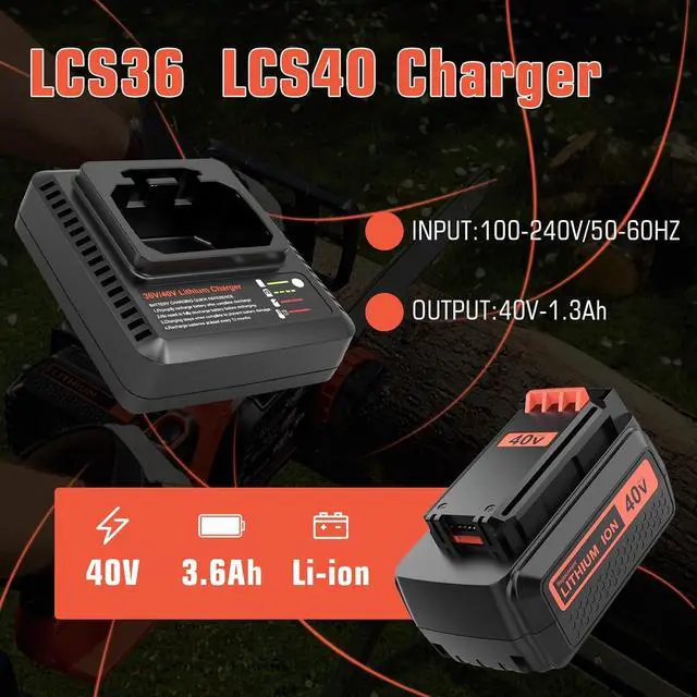 Charger Compatible Original Battery Code: Compatible with Black and Decker 40V Max lithium Charger LCS40, LCS36, 90601950N