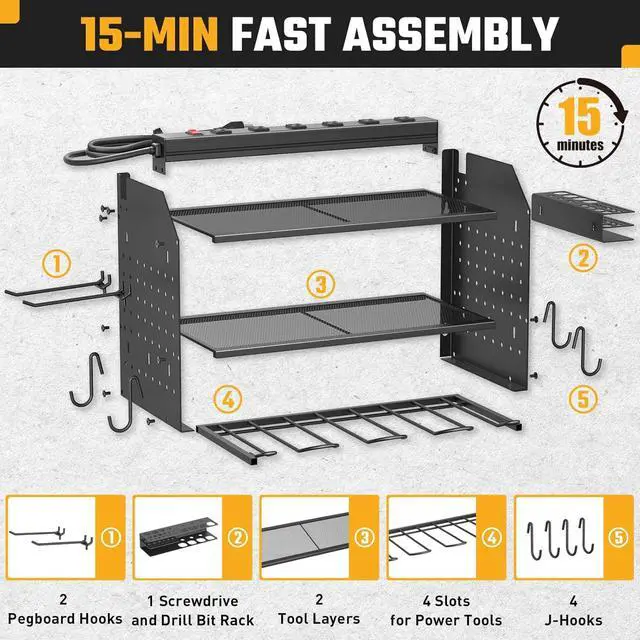Easy to InstallTool organization and storage is removable design, refer to the professional installation manual, you can assemble a perfect tool rack wall mount in just a few minutes. You only need to connect the lateral plate and shelves with screws and hang it on the wall. Whether you're mounting it on a wooden wall, concrete surface, or pegboard, this tool rack wall mount is designed for easy and secure attachment. Amazing Christmas Father's Day gift for men.