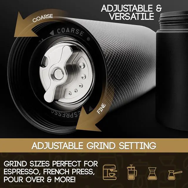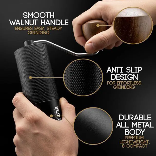 Lifetime: Crafted from durable aluminum-alloy and accented with real walnut, our coffee hand grinder promises longevity, offering a stable, premium feel that gets better with age, not worse