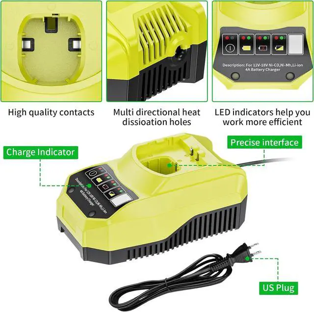 with multiple protections: over-charge, over-discharge, short-circuit, overload, and overheating. Includes a US plug fast ryobi battery charger (18V, 4.0A ) for secure, worry-free operation.