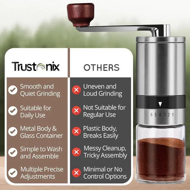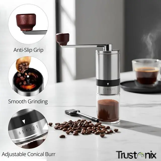 All Coffees: The overall performance of the grinder is consistent across all sizes, which enhances the overall flavour extraction. The manual grinding uses a smooth method for accuracy and uniformity for every cup you brew, whether at home or in the office.
