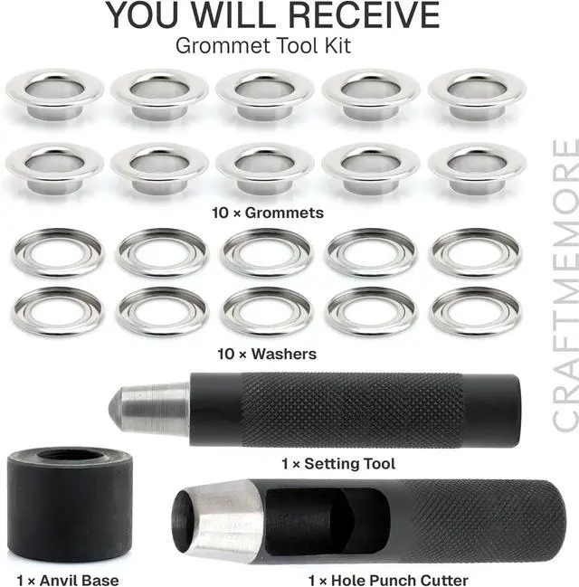 1/2" Grommet Tool Kit Eyelet Setting Tool Grommet Setter Hole Punch Cutter & Pack of 10 Grommets (1/2 (13mm) Inside Diameter)