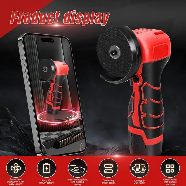 Portable Mini Angle GrinderThe size of this angle grinder is 20cmX8cm, and the weight is only 1.1 kg. It has an ergonomic non-slip silicone handle, easy to grip and one hand operate.
