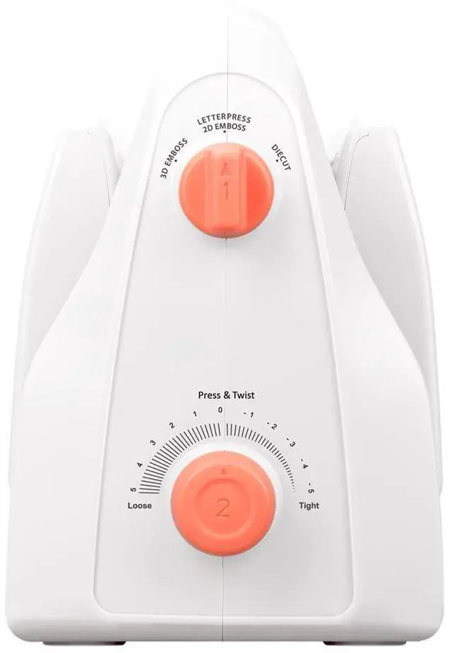 Embossing: Turn the top button to 2d embossing, bottom button to loose, magnetic mat snaps with platform + embossing folder + plate b.