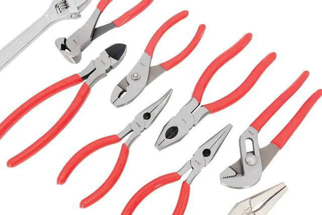Set includes the following: 6" Long Nose Pliers, 6" Bent Long Nose Pliers, 6" Slip Joint Pliers, 6" Groove Joint Pliers, 6" End Nipper Pliers, 7" Linesman Pliers, 7" Diagonal Cutting Pliers, 6.5" Locking Long Nose Pliers, 7" Locking Pliers, 8" Adjustable Wrench is an industry leader in automotive and industrial specialty tools and equipment, manufacturing the highest quality, unique, and innovative tools and products, designed to meet the specific needs of mechanics, contractors, and other working professionals.