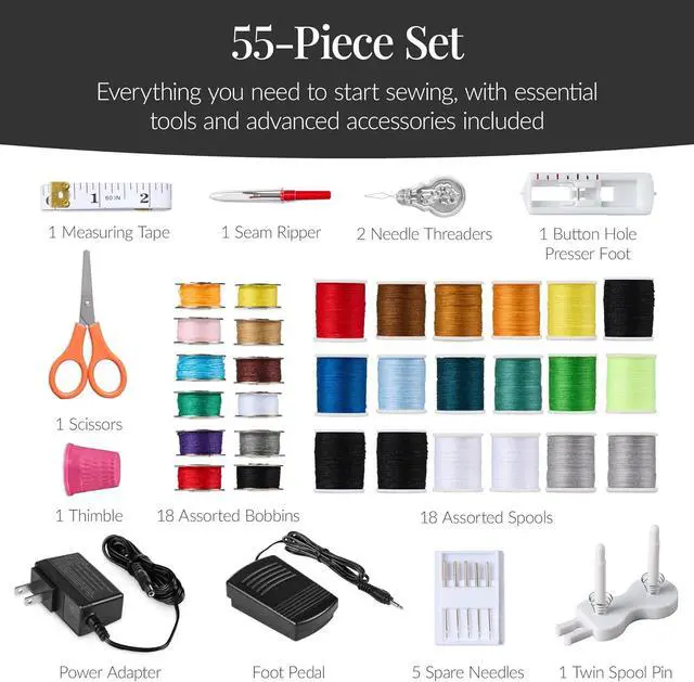 Easy to use: Designed for beginners and pros, featuring automatic thread rewind, two speeds, adjustable tension, reverse stitch, LED light, and built-in cutter.