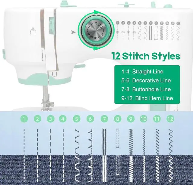 Complete Multi-Function Kit: Our sewing machine kit Includes a sewing thread kit, 5 spare needles, 1 twin needle, 5 specialized presser feet, and 1 universal foot. This complete set enables diverse techniquesfrom basic seams and decorative stitches to buttonholes, zipper installation, and sleeve/hem sewing with the free-arm function.