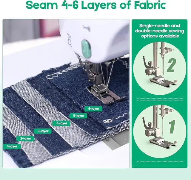 Adjustable Tension & Versatile Performance: Achieve perfect stitch quality with adjustable thread tension (1-9 settings) for different fabric types. The built-in LED work light illuminates your sewing area, while the powerful capabilities handles up to 6 layers of fabric. the compact and lightweight design makes it ideal for both home use and travel sewing needs.