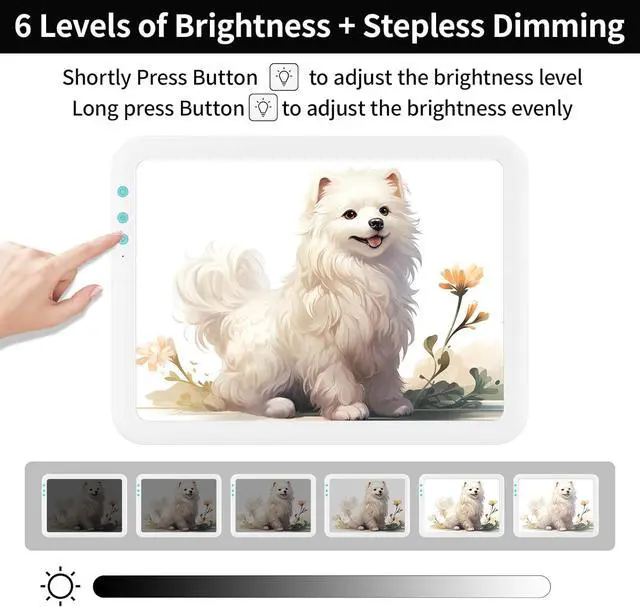 Good for Your Eyes Our light source is soft and uniform enough to protect your eyes from being hurt. There is no luminous spot or strobe in this A4 light table. The tracing light will not harm for your eyes even stay for long time as our eyesight protected techonology. Moreover, the LED light combines high energy efficiency with low luminous energy that can be used for a long time.