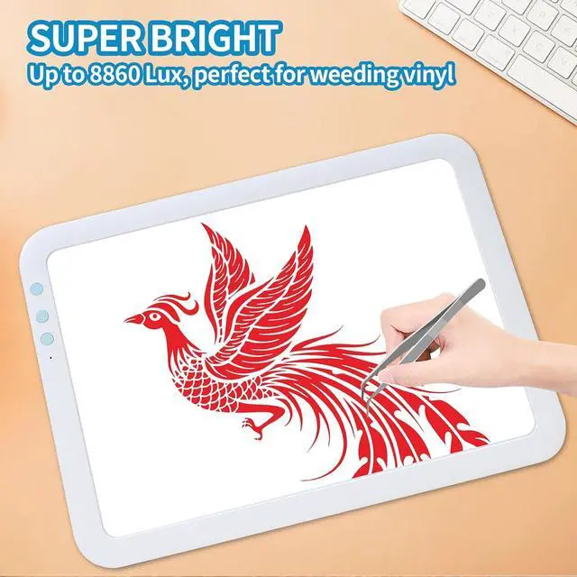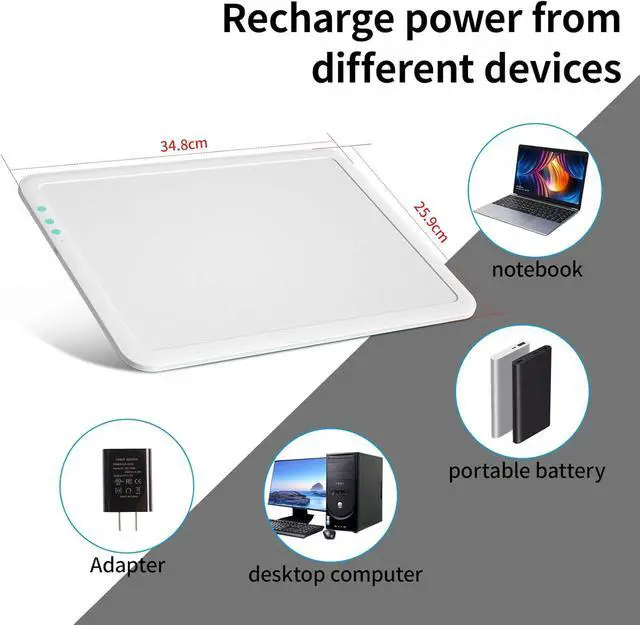 Multi-Usage This Rechargeable super bright lightpad Overall Size is 34.8 x 25.9 x 0.8 cm ( 13.7 x 10.2 x 0.31 inches ), and the visual working area is 30.9 x 21.9 cm ( 12.2 x 8.6 inches ). The LED Lightboard is perfect idea for Diamond Painting, stenciling, 2D animation, calligraphy, embrossing, scrapbooking, tattoo tracking, sketching & drawing, streaming, sewing projects, embroidery craft projects, fabric design, photograph, film, slider transferring, architecture, drawing etc.