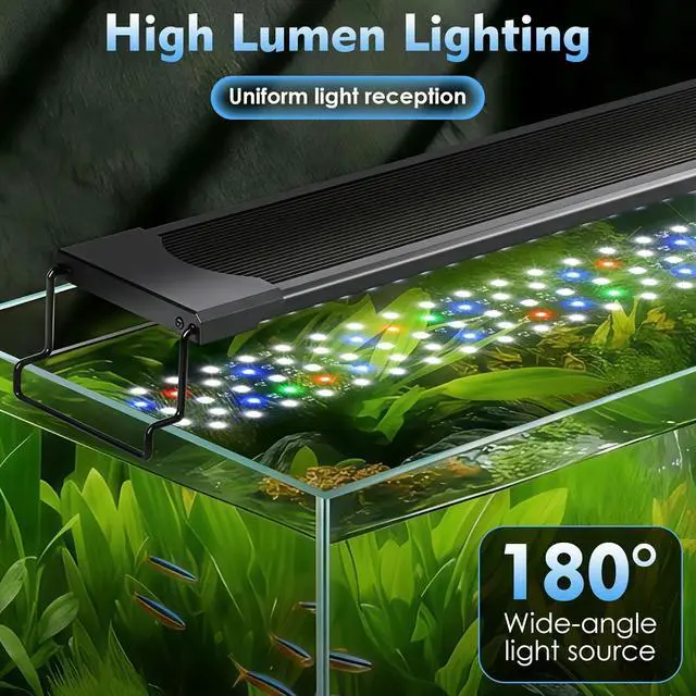 DURABLE METAL HOUSING&ADJUSTABLE FIT: Built with a high-quality aluminum alloy body for superior heat dissipation and easy cleaning. The included extendable bracket (up to 4.92 inches) ensures a secure and flexible fit on a wide range of aquarium sizes.