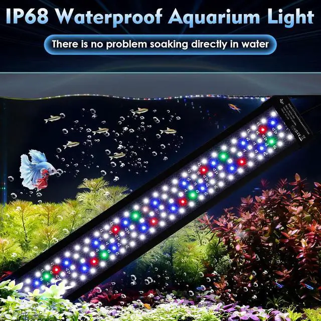 TRUE IP68 SUBMERSIBLE RATING: This aquarium lights for fish tank engineered with the highest waterproof standard, this fish tank light can be safely submerged and used directly in water. It provides a vibrant full spectrum ideal for both freshwater plant growth and enhancing your aquarium's visual appeal.