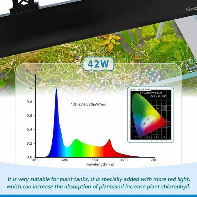 42W PLANTED AQUARIUM LIGHT PARAMETERS: