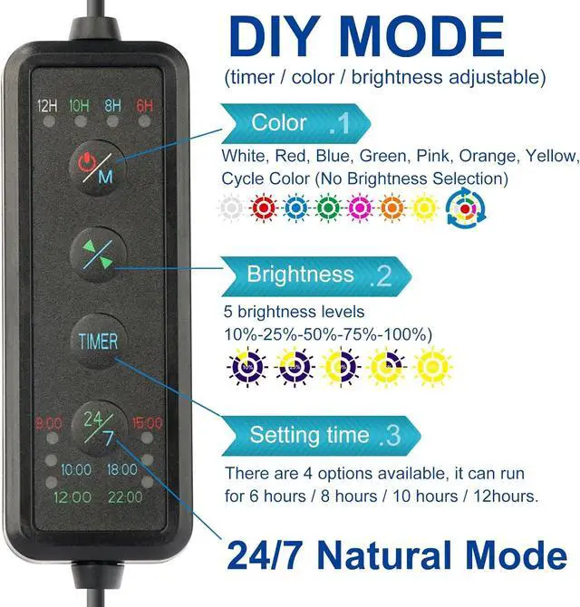 Adjustable Intensity: The aquarium light intensity of each color can be adjusted. Different intensity to fit for different plants requirement.
