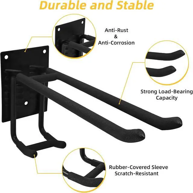 Easy Installation: The garage wall hooks come with screws and anchors for quick, hassle-free mounting on various wall types, making it simple to organize your garage efficiently and save space.