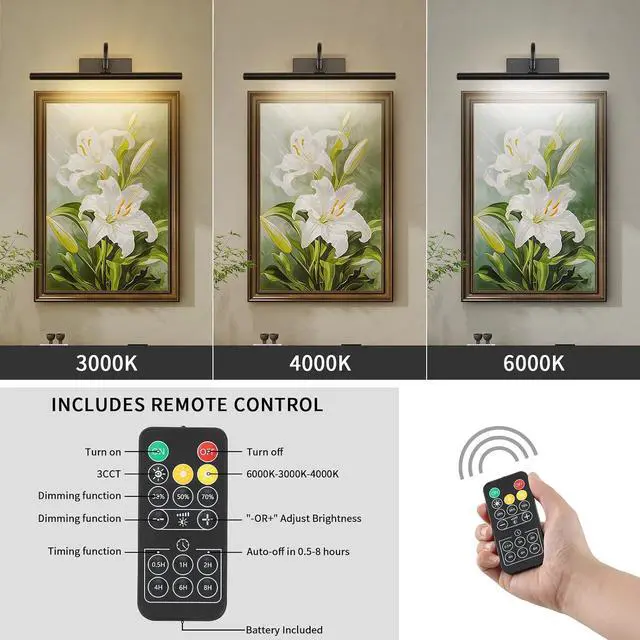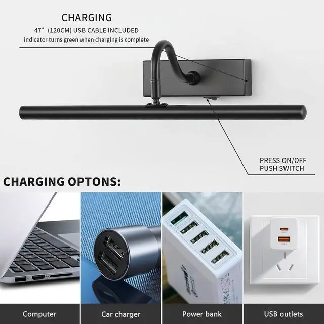 Effortless Wireless Installation: Powered by rechargeable batteries, no complicated wiring is required for this wireless gallery light. Enjoy a seamless setup and effortless installation, allowing you to focus on displaying and enjoying your artworks rather than dealing with pesky cables.