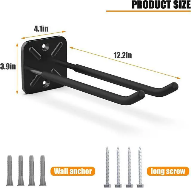 SPACE SAVING - 12.4 inch long utility storage hooks can help you to storage many garage tools. Organize heavy duty tools in the garage, garden, shop, basement, or warehouse. A great choice for garage organization.