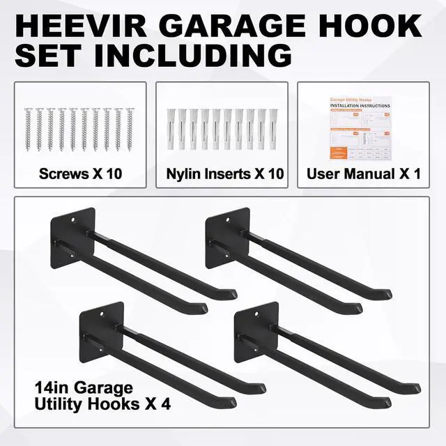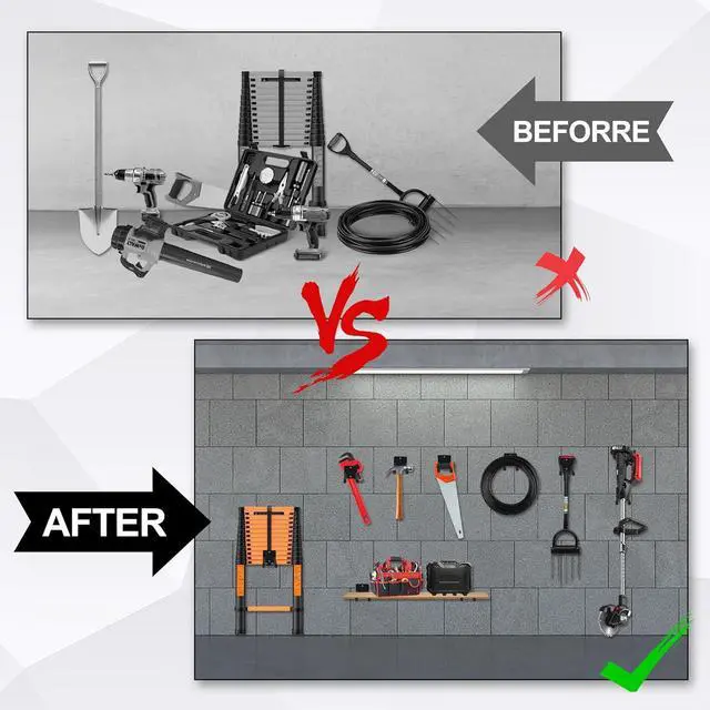 Multi-Purpose & Space SavingThe garage wall hangers are 14 inches in length with a 2.5 -inch double hook spacing, enough to store many of your tools and items. it can help you to storage many tools. Organize heavy duty tools in the garage, garden, shop, basement, or warehouse. A great choice for garage organization.