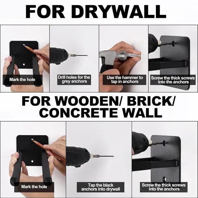Easy To InstallAll you need is an electric drill, and perhaps a level to ensure that it is lined up in a row for mounting on the studs on the wall. Install to drywall or other paneled wall sheeting, must be located to solid structures. (Includes all installation hardware. )