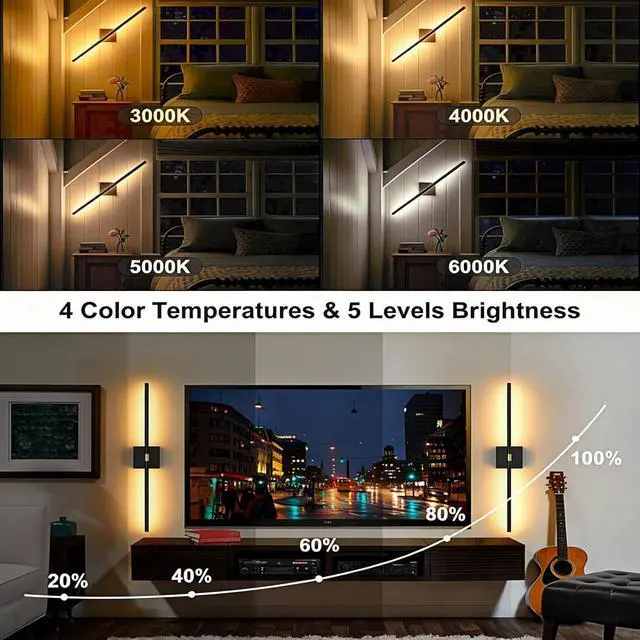 4 Color Temperatures & Brightness set of 2 wall sconce battery operated lighting feature upgraded Touch Control & Remote Control. You wont have to worry about adjusting the wall lamp settings without the remote, as a short touch changes the color temperature (3000K/4000K/6000K) and a long touch adjusts the brightness (20%-100%), and the remote can also operate multiple battery sconces at once