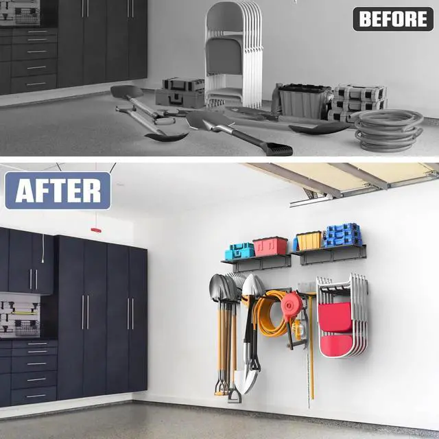 Flexible and Adjustable Storage: Includes 4 tracks, allowing you to easily position hooks and shelves to create a customized setup that suits your specific storage needs