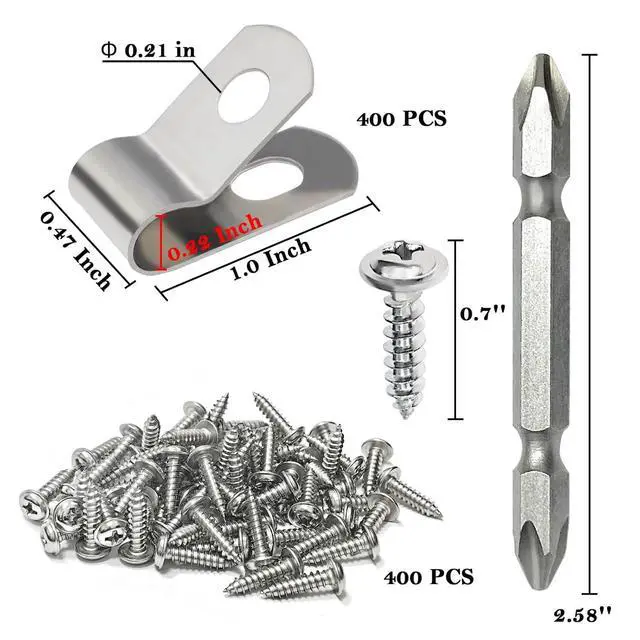 Package List& Lifetime Service GuaranteeIt include 400 pcs T304 stainless steel Fence Wire Clamps & 400Pcs T304 stainless steel screws. and 1*screwdriver bits. products are offering 1 Years Warranty or Replacement & Lifetime Customer Service. If you have any questions, feel free to contact us and we will reach you at the soonest to offer a satisfactory solution.