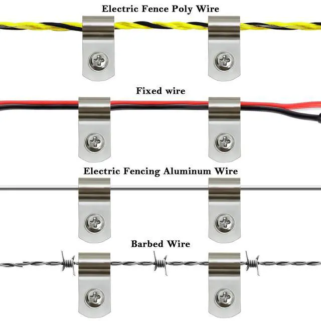Wide Application Use the clips clamps to install on post to protect your livestock, dogs, cats, cattle, pigs, pets or other animals; These wire fence clips can be used to install wire on all types of fence posts to prevent your livestock or pets from fleeing. These R-clamps can also be used to secure a wide variety of wires and cables in warehouses, homes, offices or other locations. Make your cables safer and more beautiful.