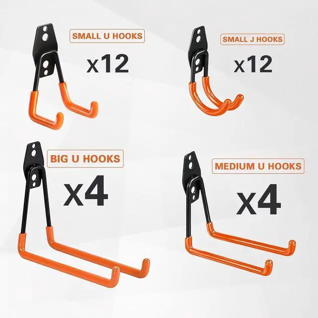Various size of hooks to adapt different scenes and create more rooms! Such as garage, basement, shed, shop, kitchen, and bathroom, to create efficient storage space.