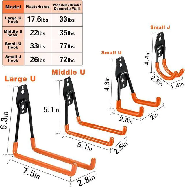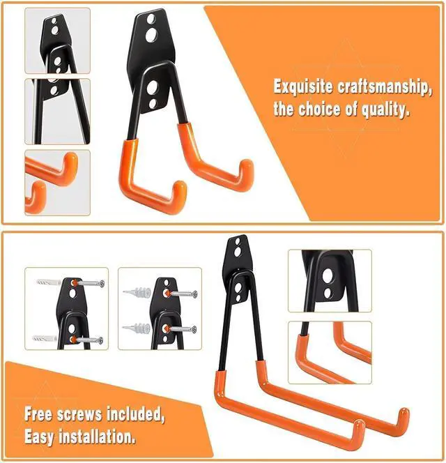 You never have enough space in your garage because there are so many things? The garage hook is a perfect solution that can help you more effectively utilize vertical storage space, organize everything, and easily find what you need at a glance. There are multiple sizes of garage hangers to meet all your needs, from bicycle sized items to smaller items such as extension cords. Maximize the effectiveness of your anti slip steel garage hooks and organize your garage space effectively.