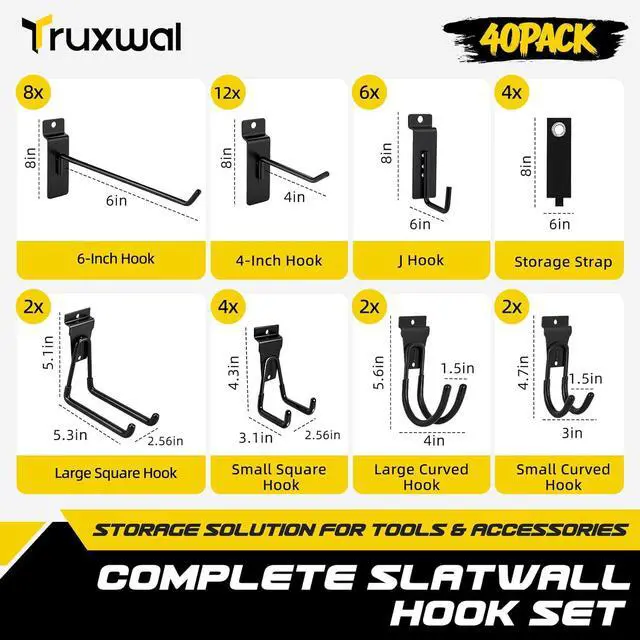40 Pcs Slatwall Hooks & Hangers Maximize Your Garage Space