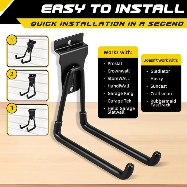Fits Standard 3-Inch Slatwall PanelsDesigned to fit most 3-inch on-center slatwall panels commonly used in garages, workshops, and sheds. Installs in seconds no screws or drills required.