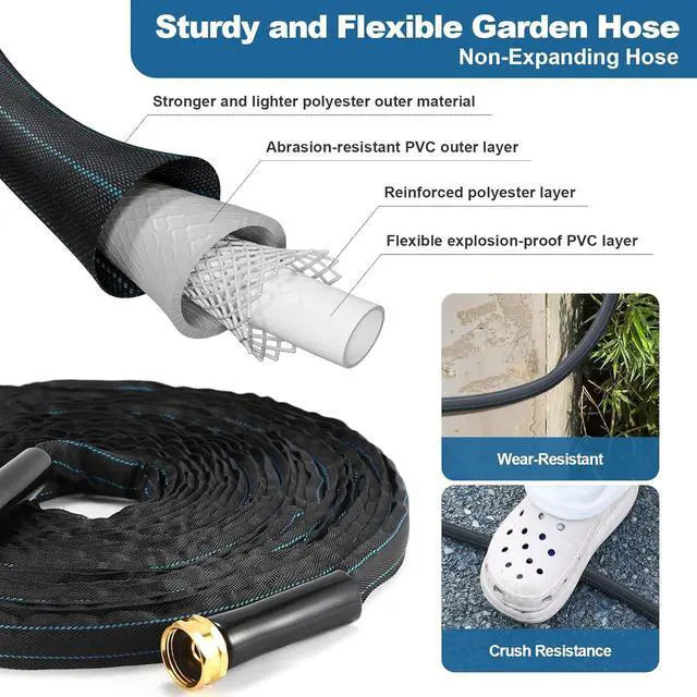 Reliable and Stable Use: This collapsible hose is suitable for a variety of situations, including watering gardens, cleaning houses, walkways, patios, cars, and yards, as well as bathing pets. It can withstand extreme heat and cold, and operates efficiently in most extreme weather conditions, such as extreme temperatures and freezing temperatures. Having a waterhose for outside, that can adapt to various environments and climates meets your diverse usage needs.