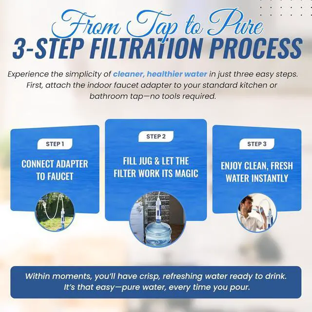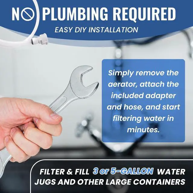 Easy DIY Installation: No plumbing requiredsimply remove the aerator, attach the included adapter and hose, and connect to your water jug filtration system in minutes.