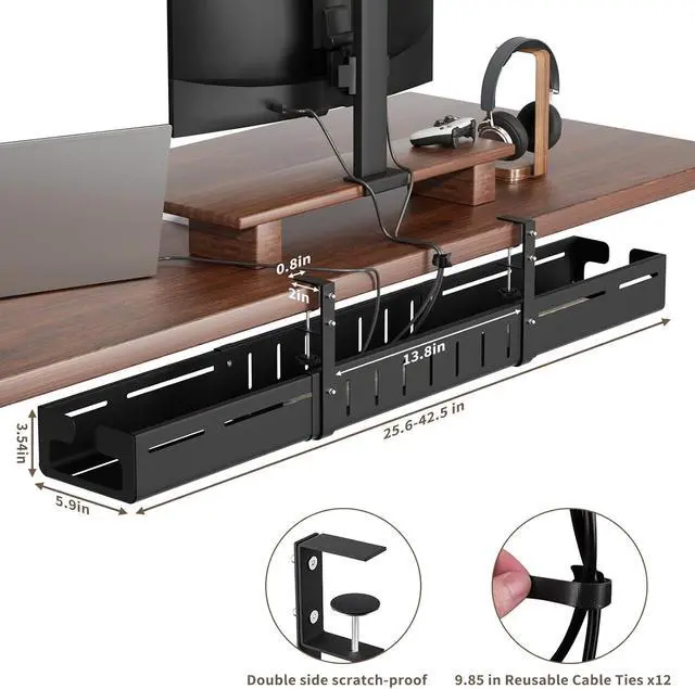 Designed for Home Office & Standing Desks-A sleek black finish blends seamlessly with modern setups, delivering reliable cable management under desk for home offices, gaming stations, and standing desks. Includes cable ties to keep wires neatly bundled for long-lasting organization